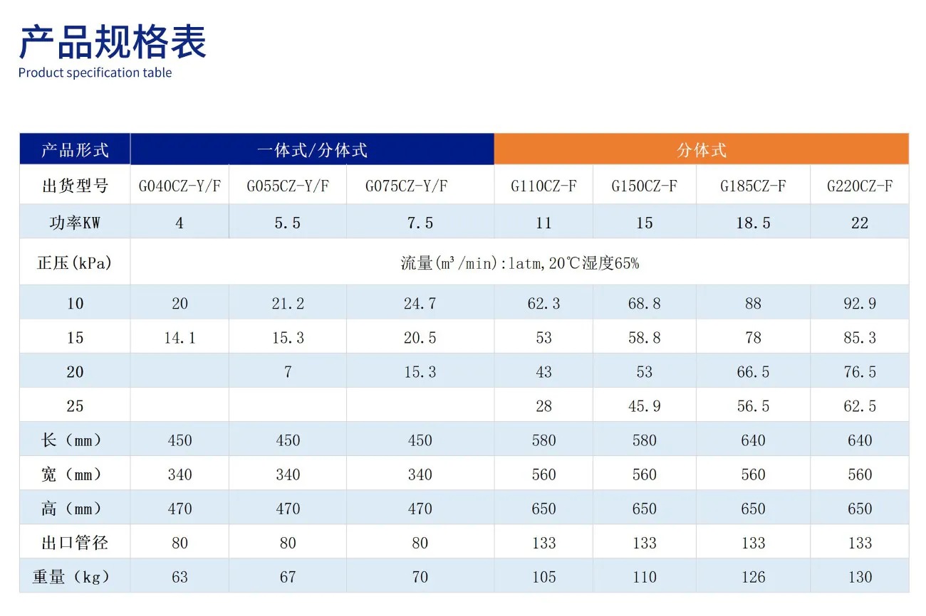 歐冠5.5KW變頻高速離心鼓風機 G055CZ-F(分體式)永磁直驅(qū) 效率更高
